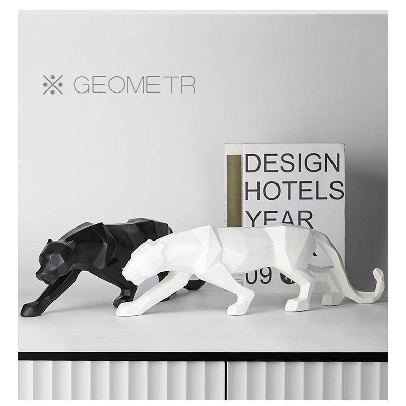 Escultura Pantera Negra Geométrica De Gesso Estatueta De Decoração Para Casa
