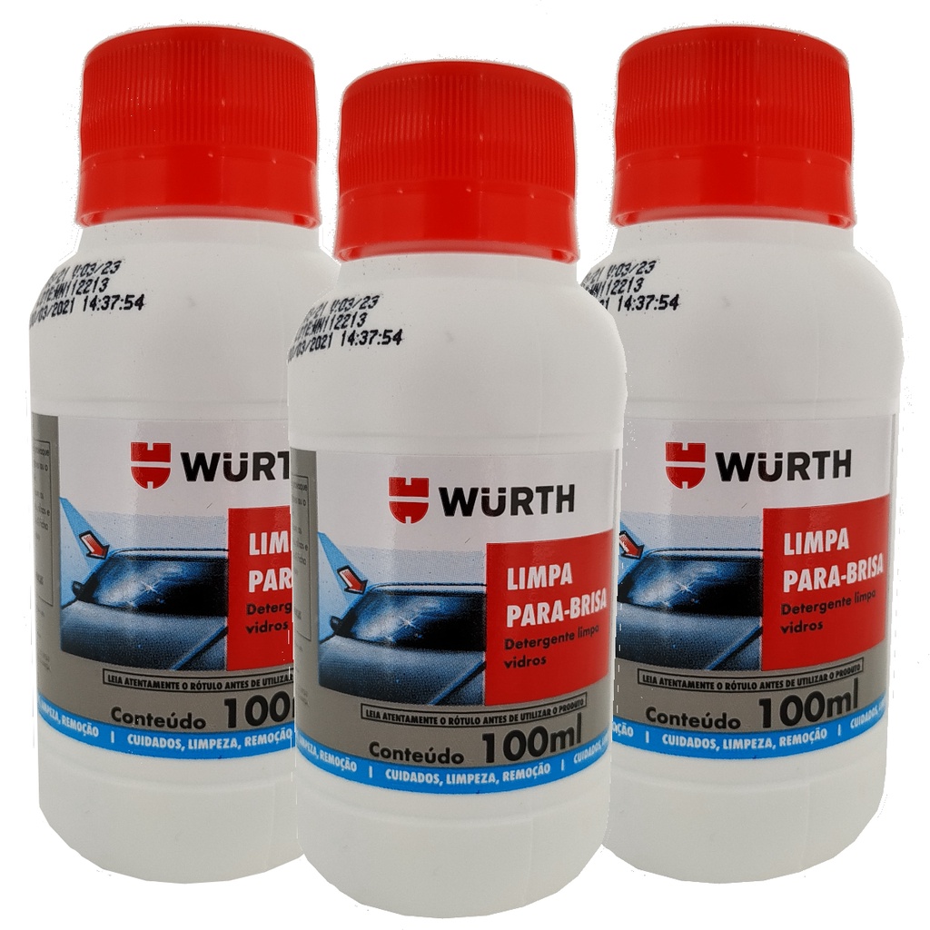 Kit Com 3 Limpa Parabrisa Wurth Detergente liquido Automotivo Limpeza de Vidros Carro Fluido 100ml