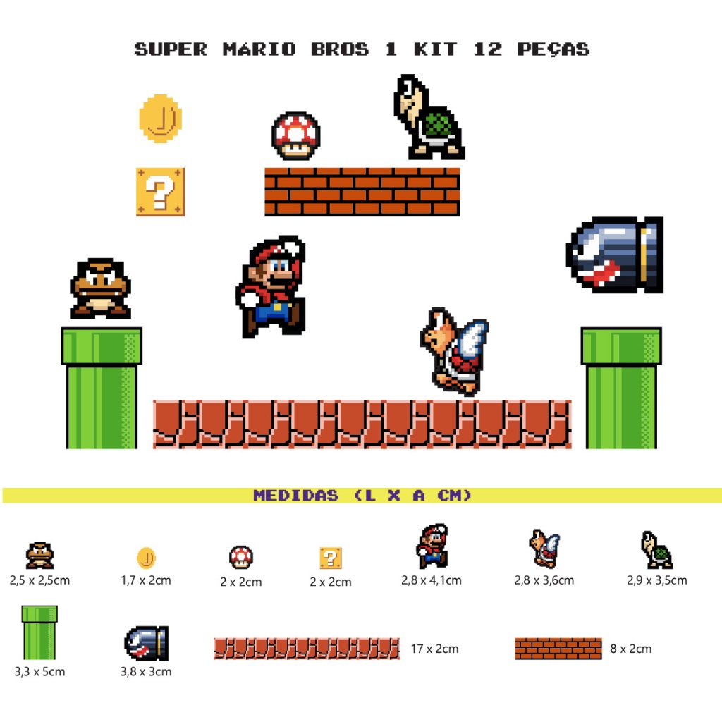 Ima de Geladeira Super Mario Bros 1-1 Nintendo - Kit 12 Peças