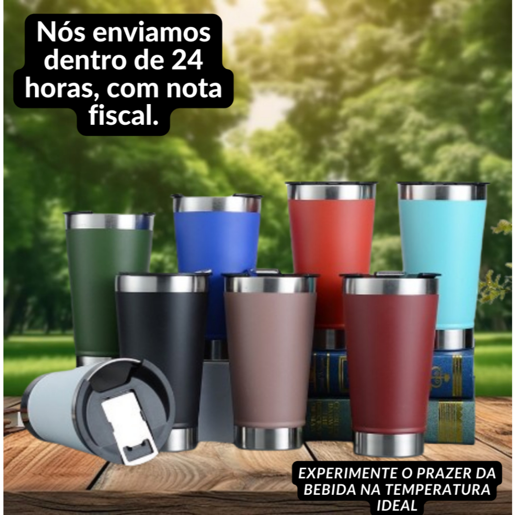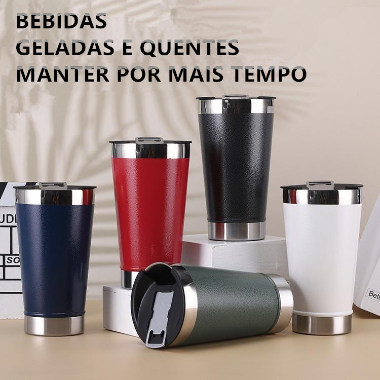 Copo Térmico 473ML Para Cerveja/ Café/ Chá/ Chopp, Com Tampa e Abridor de Garrafas enviamos em 24hs