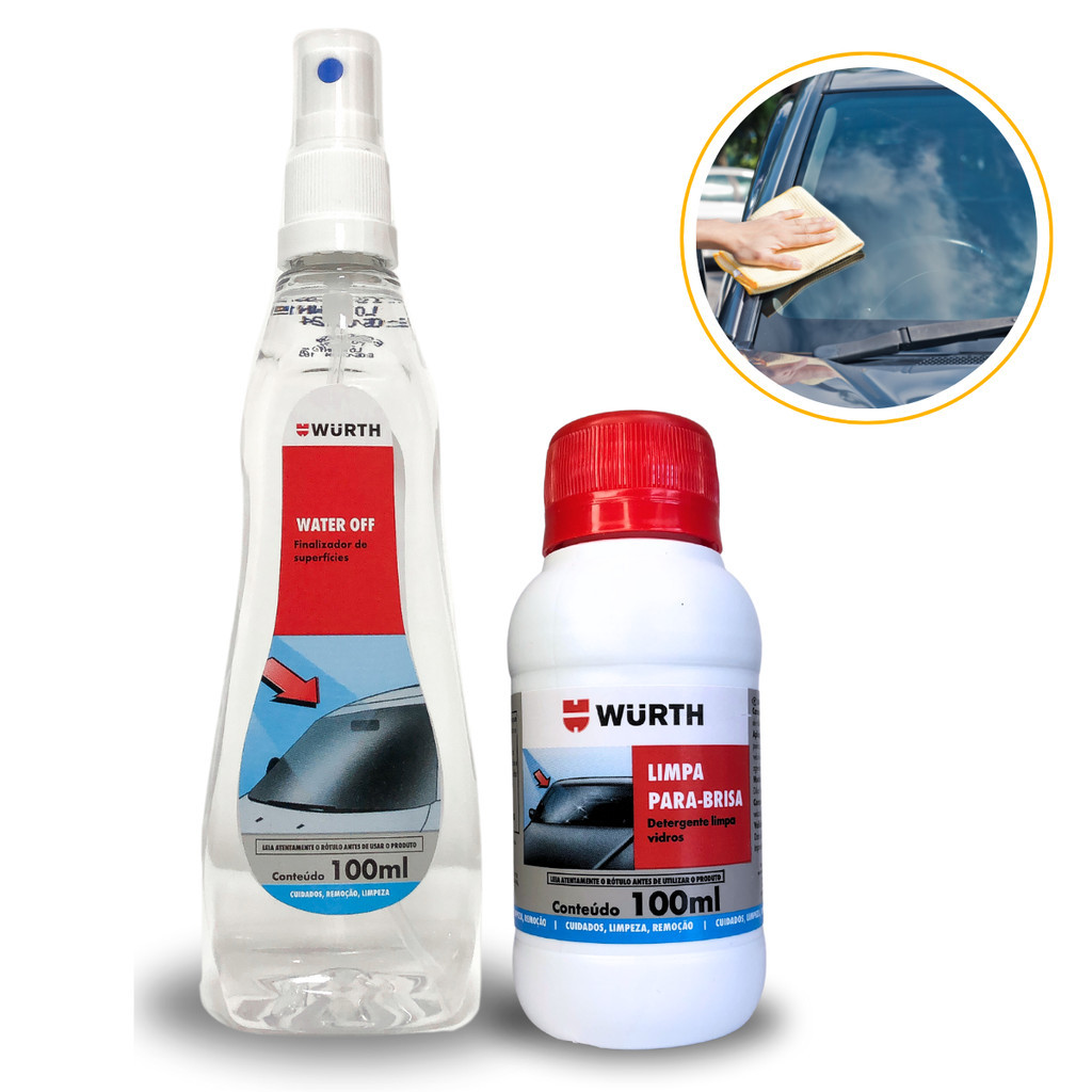 Kit Limpa Para-Brisa + Water Off Wurth 100ml Fluido Liquido Limpeza e Finalizador Cristalizador Parabrisa Carro Prontas