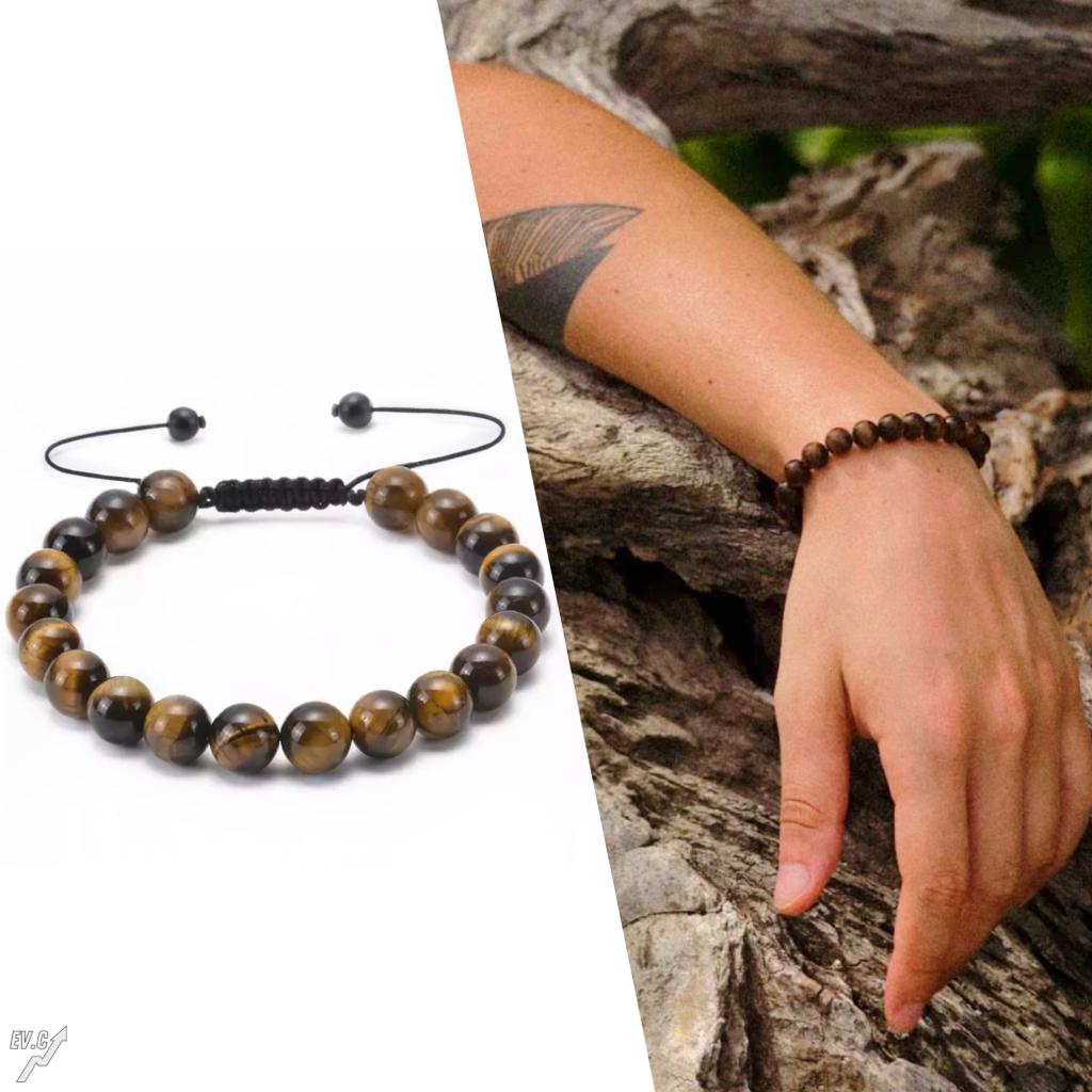 Pulseira Pedra Natural Bracelete Onix Olho de Tigre Masculina Feminina 8mm Envio Rápido