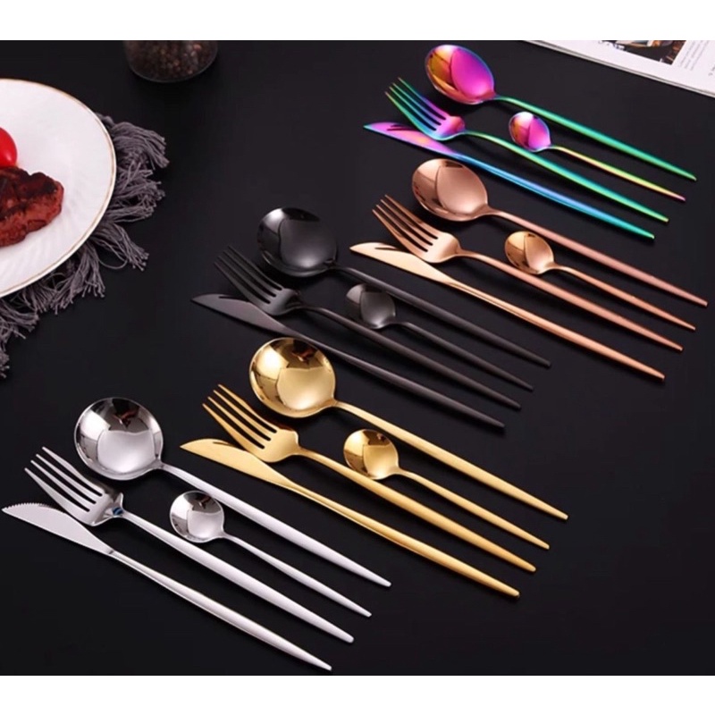 Kit Jogo De Talheres Luxuoso Mesa Posta 24 Peças Inox Premium Dourado Preto Prata Rose Colher Garfo Faca Colorido Cozinha Chique