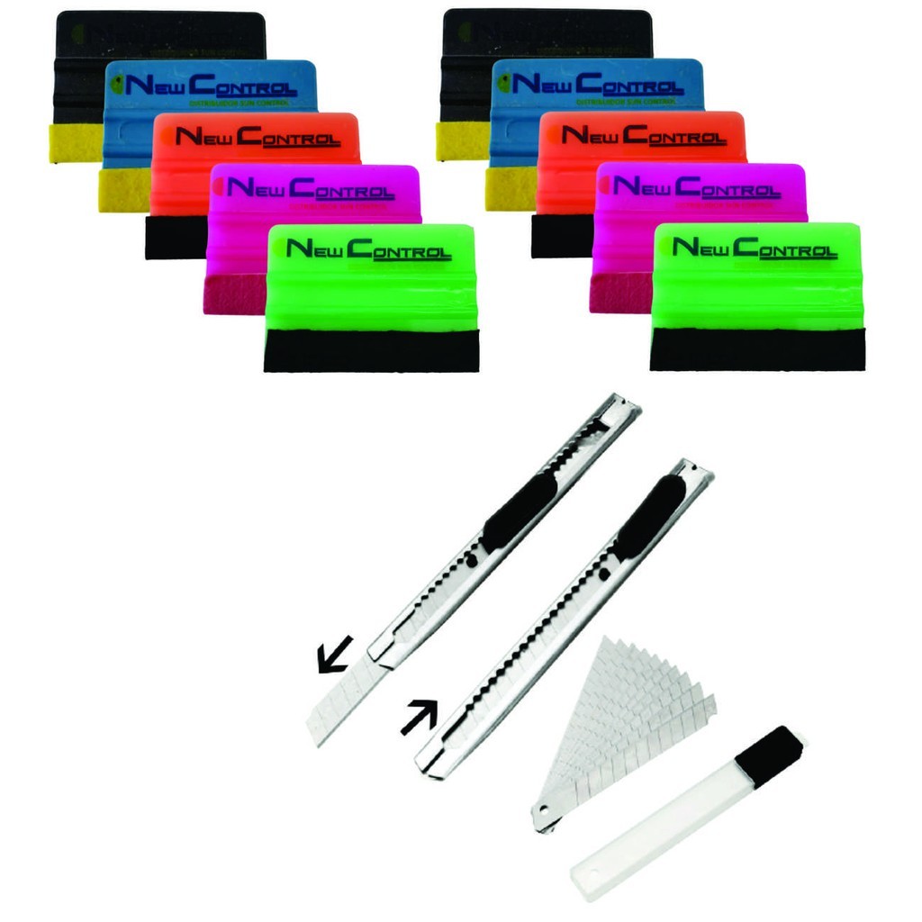 Kit Insulfilm Envelopamento Profissional 10 Espatulas de Feltro, 10 Laminas, 2 Estilete