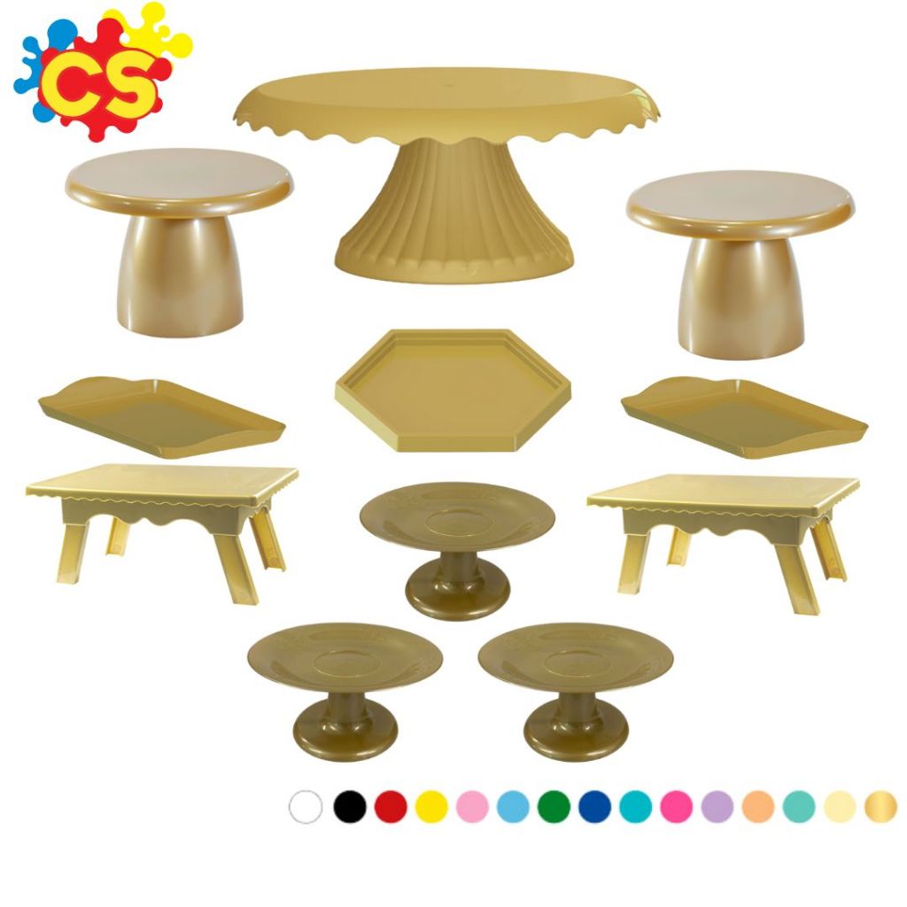 Kit Festa 1 Boleira Cake Renda 19cm + 2 Bandejas 20x13cm + 2 Mini Sextavadas (+21 cores)