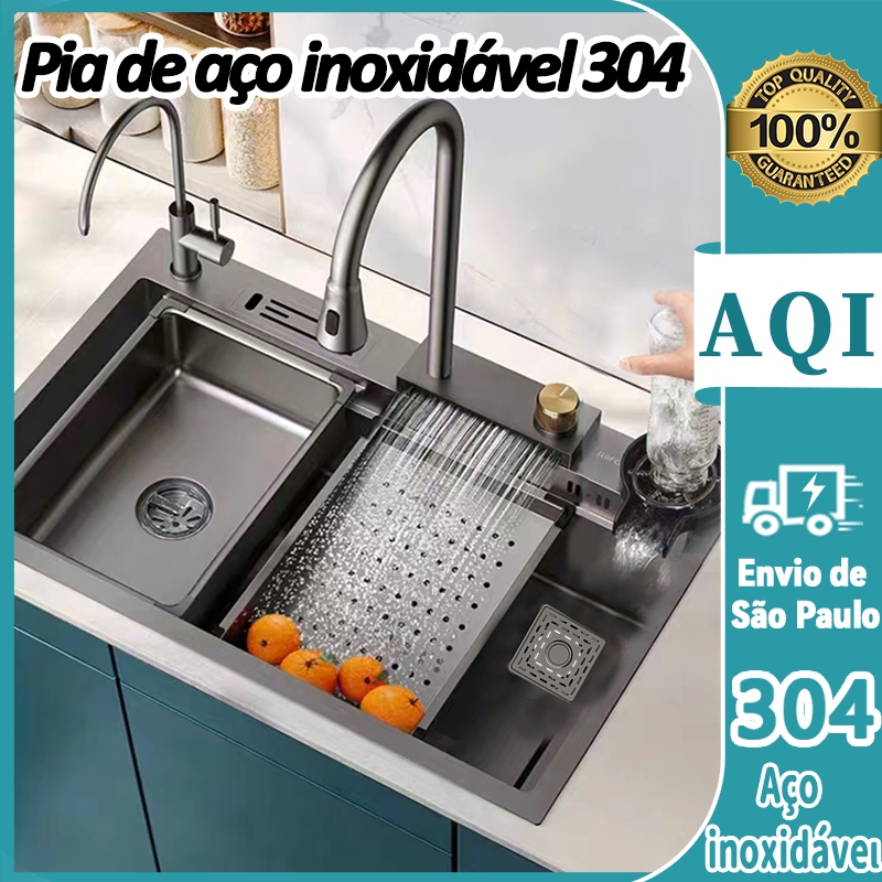 Kit Cuba Cozinha Gourmet Luxo 304 Aço Inox Pia De Cozinha Com Acessórios Conjunto De Torneiras 75X46X21cm