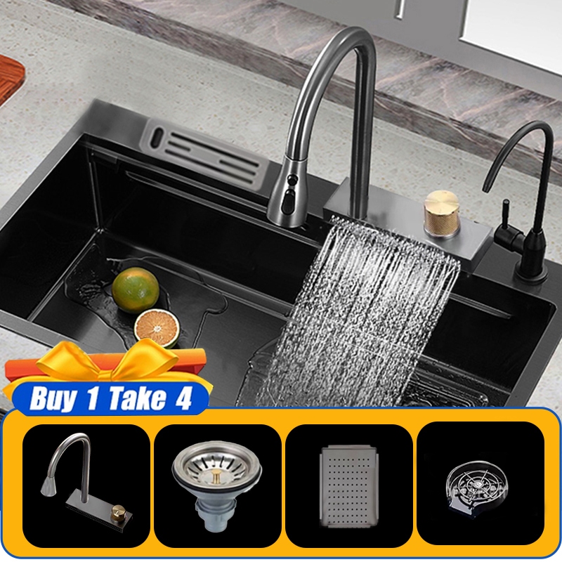 kit Cuba Cozinha Gourmet Luxo Aço Inox 304 Preto Com Acessórios Conjunto de torneiras 75cm-Para entrega imediata