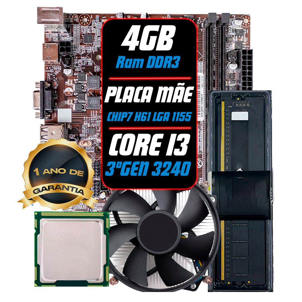 Kit Upgrade 1155 Placa Mae 1155 + Processador I3 3220 + DDR3 4gb + Cooler