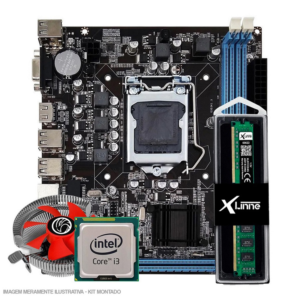 Kit Upgrade Powerpc: Placa Mãe H61 + Processador I3 3220 + Memória 8GB DDR3 + Cooler