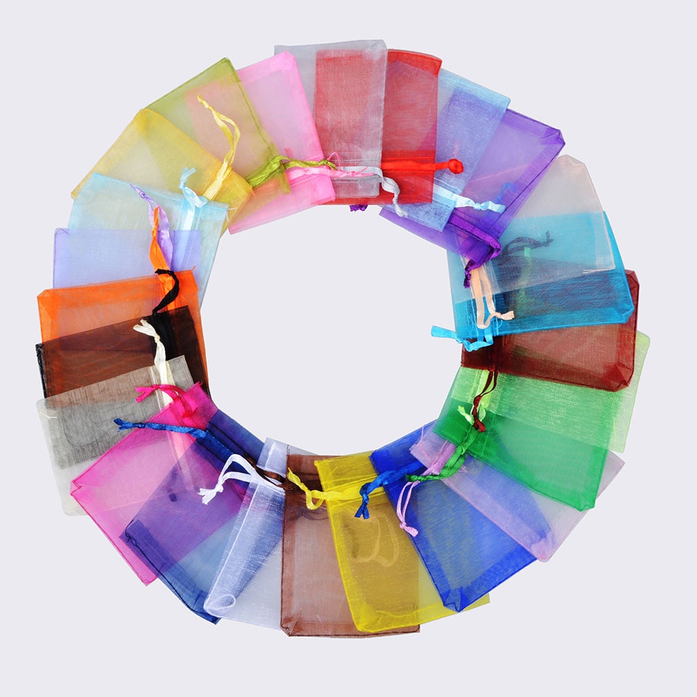 100 sacos de tecido, tule para joias, peças de resina, bijouteria, embalgem presente, lembrancinha, 5x7, 7x9, 9x12, 10x15 cm