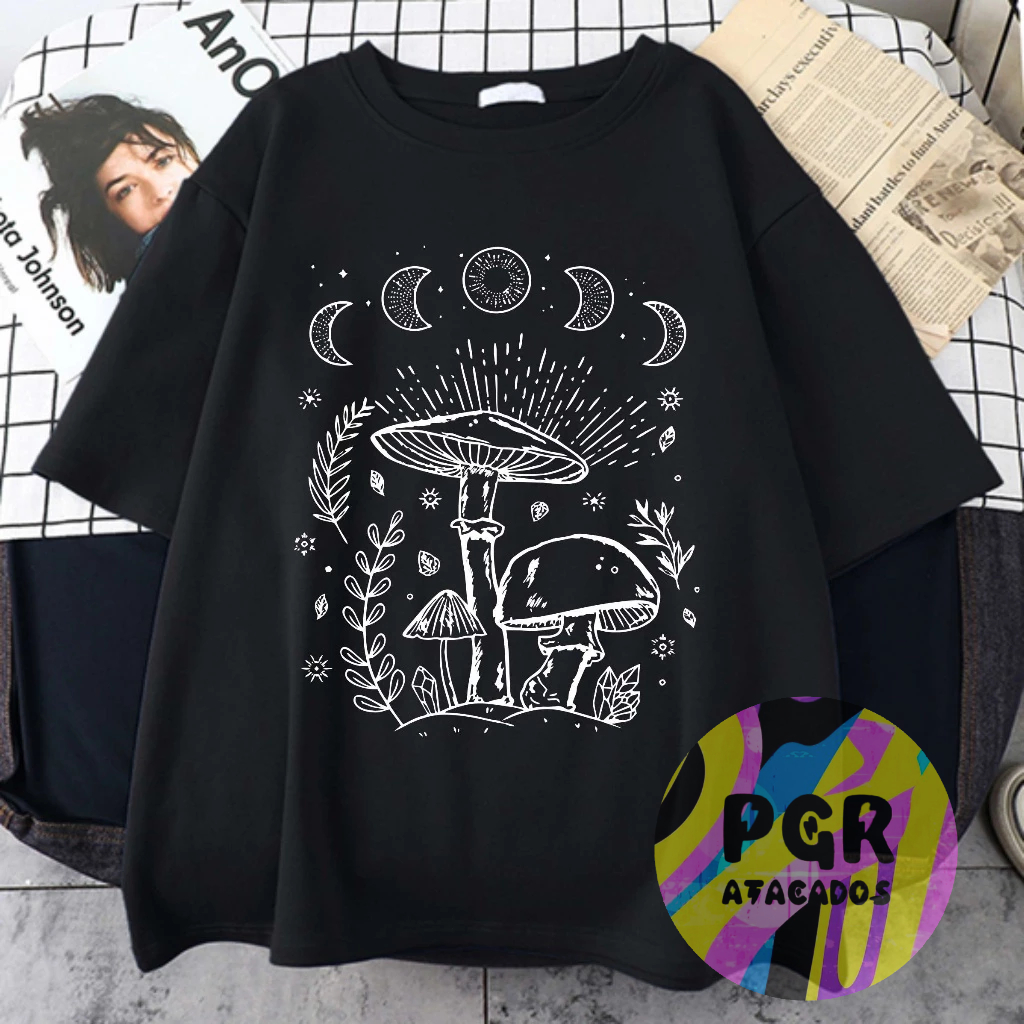 Camiseta Unissex Qualidade Algodão Cogumelo Mistico Fazes da Lua Streetwear Lançamento Temos Plus Size Envio Rápido