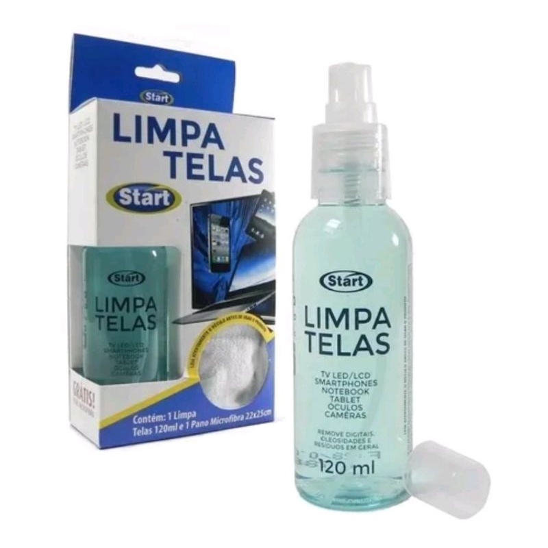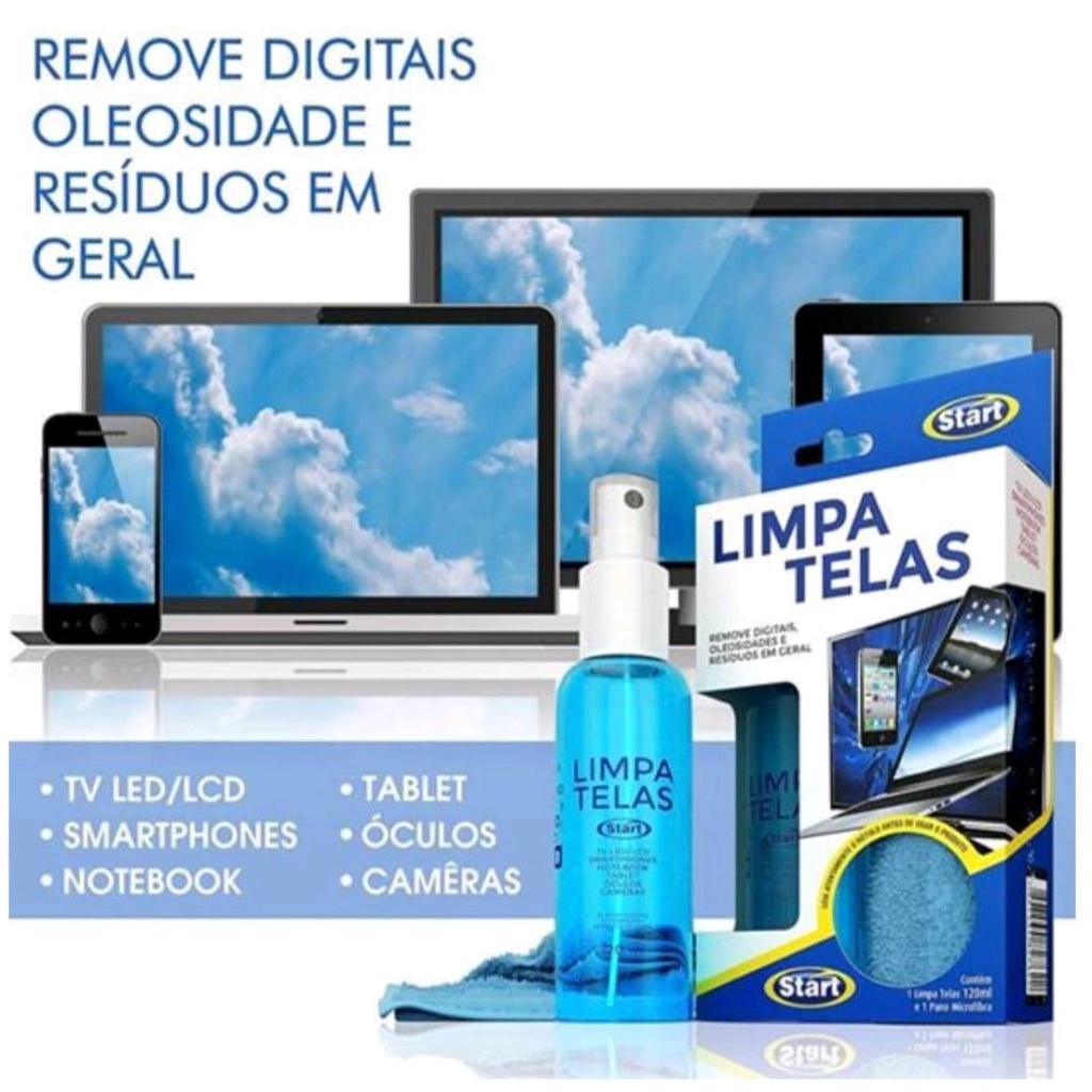 Limpa Telas Start 120ml + Pano Microfibra Removedor Sujeira Tela Celular Televisão Computador Kit