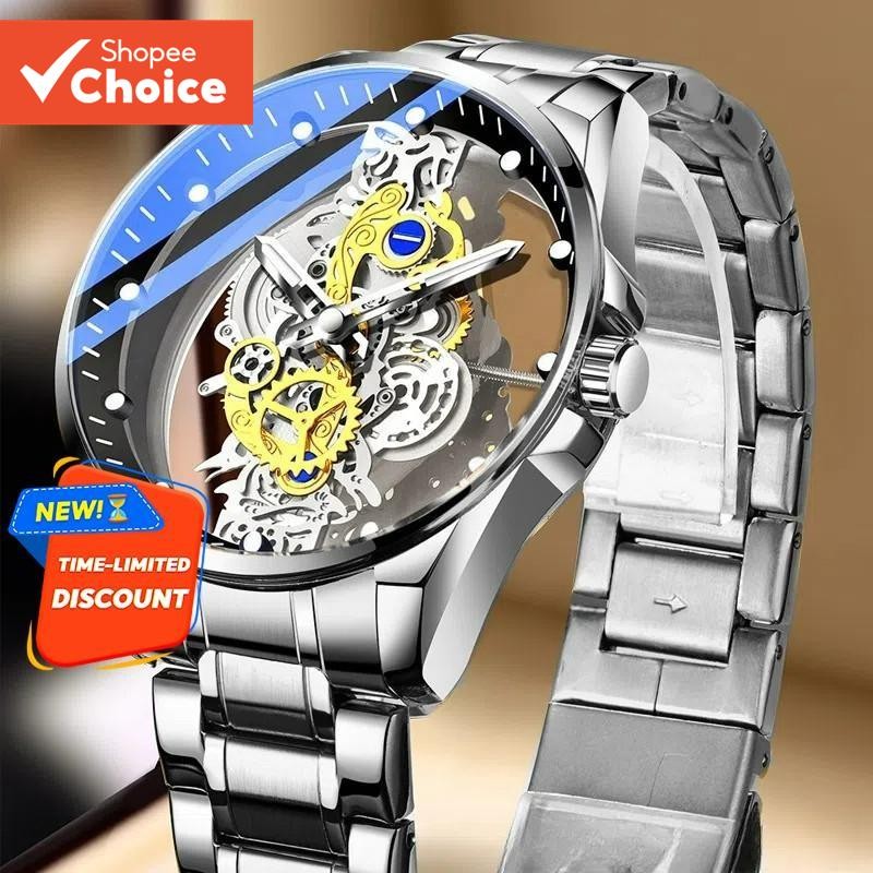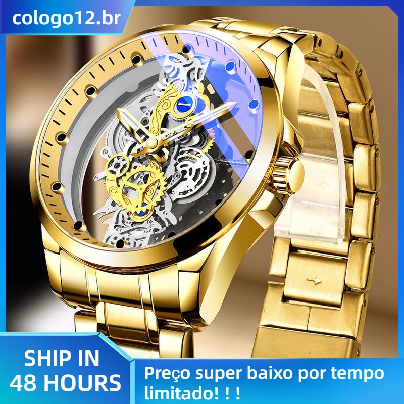 Relógio Mecânico Automático Masculino-Luminoso De Quartzo À Prova D'água Transparente De Dupla Face