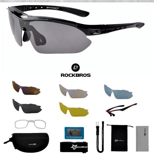Óculos Bike 5 Lentes Polarizado Suporte Grau Ciclismo Rockbros