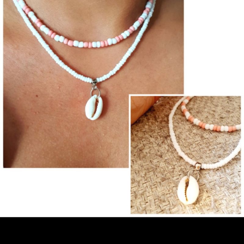 Colar de miçanga com búzios duplo / kit 2 colares de miçanga em 1