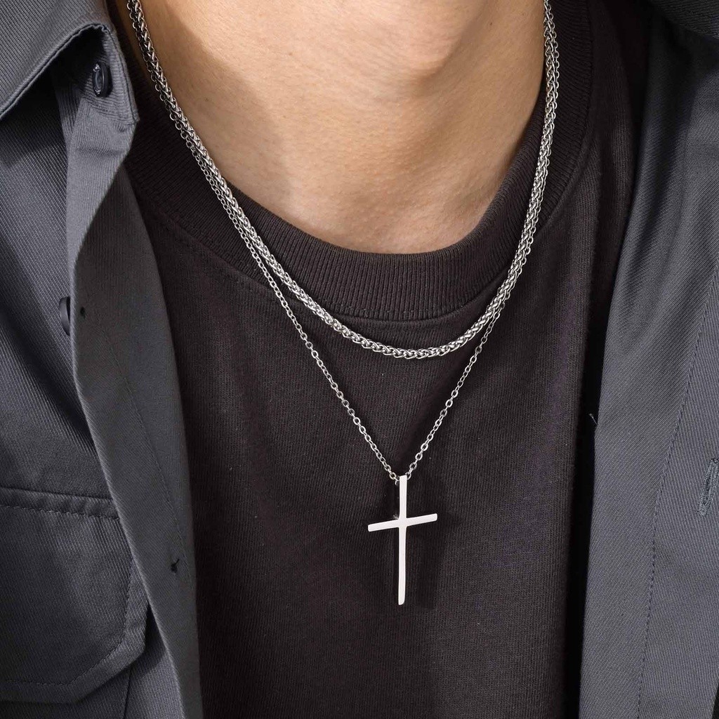 kit 2 corrente camadas cruz colares para homem cuboid cuboid cubana corda caixa de corrente colares em camadas fé jesus cristo colar pescoço