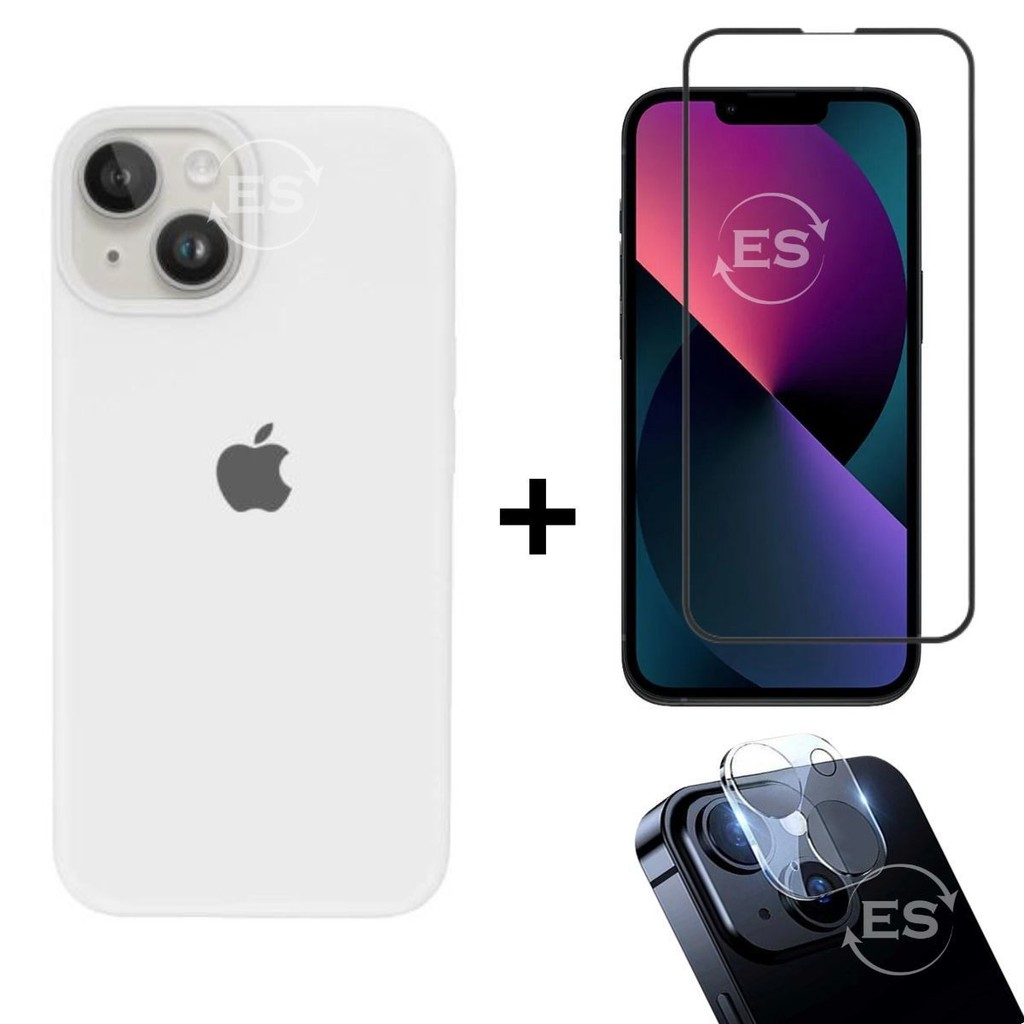 Kit 3em1 Linha Premium Para iPhone 15 Plus - Case Aveludada + Pelicula de Vidro 3D Tela + Pelicula de Protecao Lente Camera