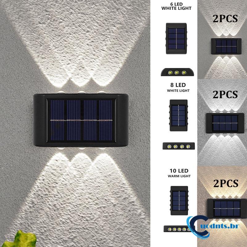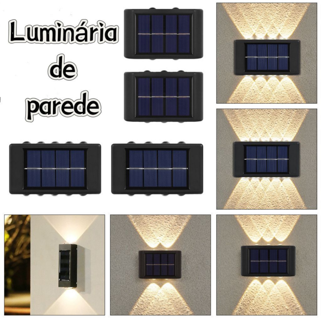 Kit 8 Luminária De Parede Led Arandela Solar com 2 Focos Externa À Prova D'Água
