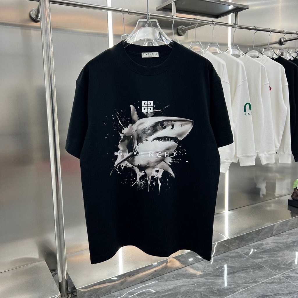 (Camiseta) spot 24 No Início Da Primavera Nova Marca De Moda Dá À Impressão De Padrão Tubarão De Algodão Homens E Mulheres Podem Usar Camisetas De Manga Curta Soltas (collar + tag)
