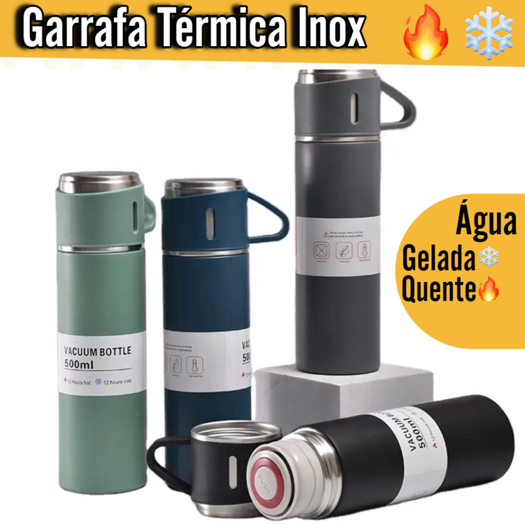 Garrafa Squeeze Com Copo Fosco Térmica Aço Inox Garrafa de Água Copo Termico