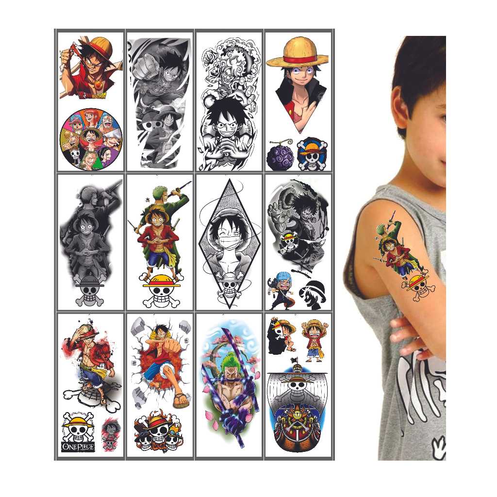 Kit 12 Cartelas Tatuagens Temporárias One Piece Anime Infantil Menino e Menina