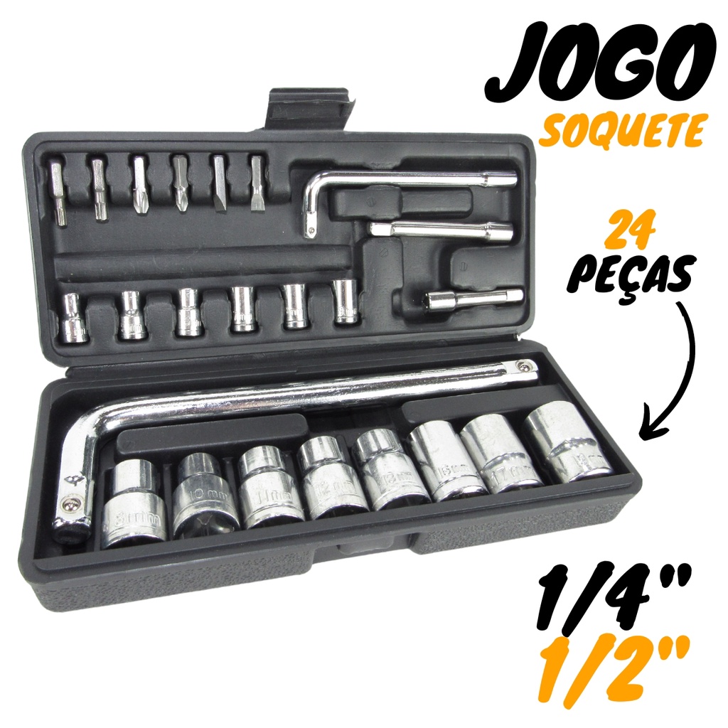 Jogo De Soquete 1/4 E 1/2 Com 24 Peças - Titanium