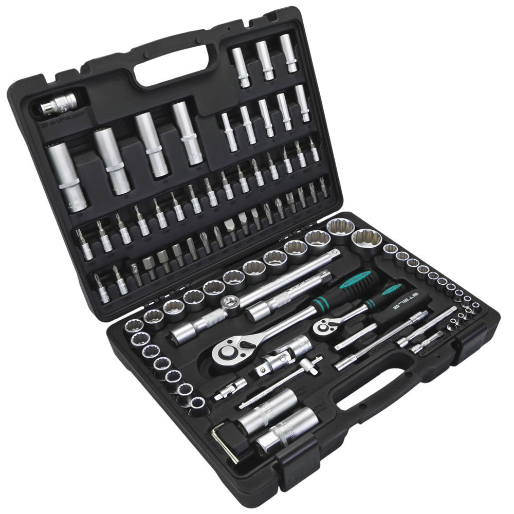 Jogo de soquetes encaixe 1/4" e 1/2" com maleta 94 peças - Stels