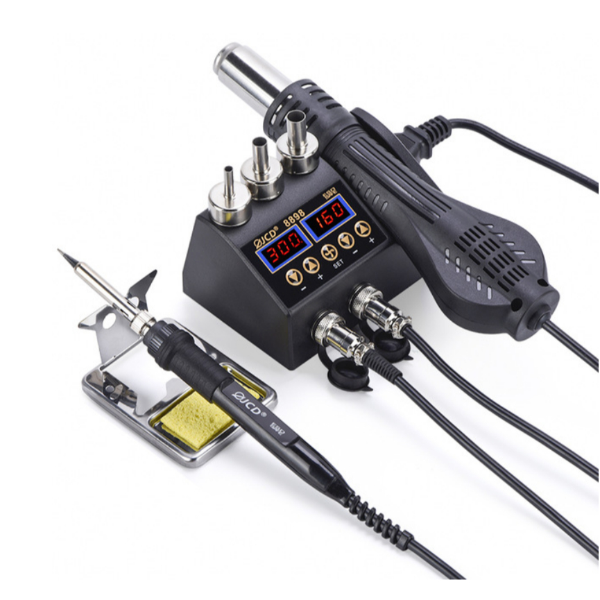 Estação de Solda Retrabalho 8898 Smd Bga 2 em 1 Pistola de Ar Quente e Ferro de Solda Elétrica Display Digital