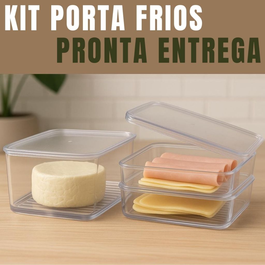 kit Porta Frios Presunto Queijo Acrílico Resistente Pote Duplo Com Tampa Hermético Empilhável