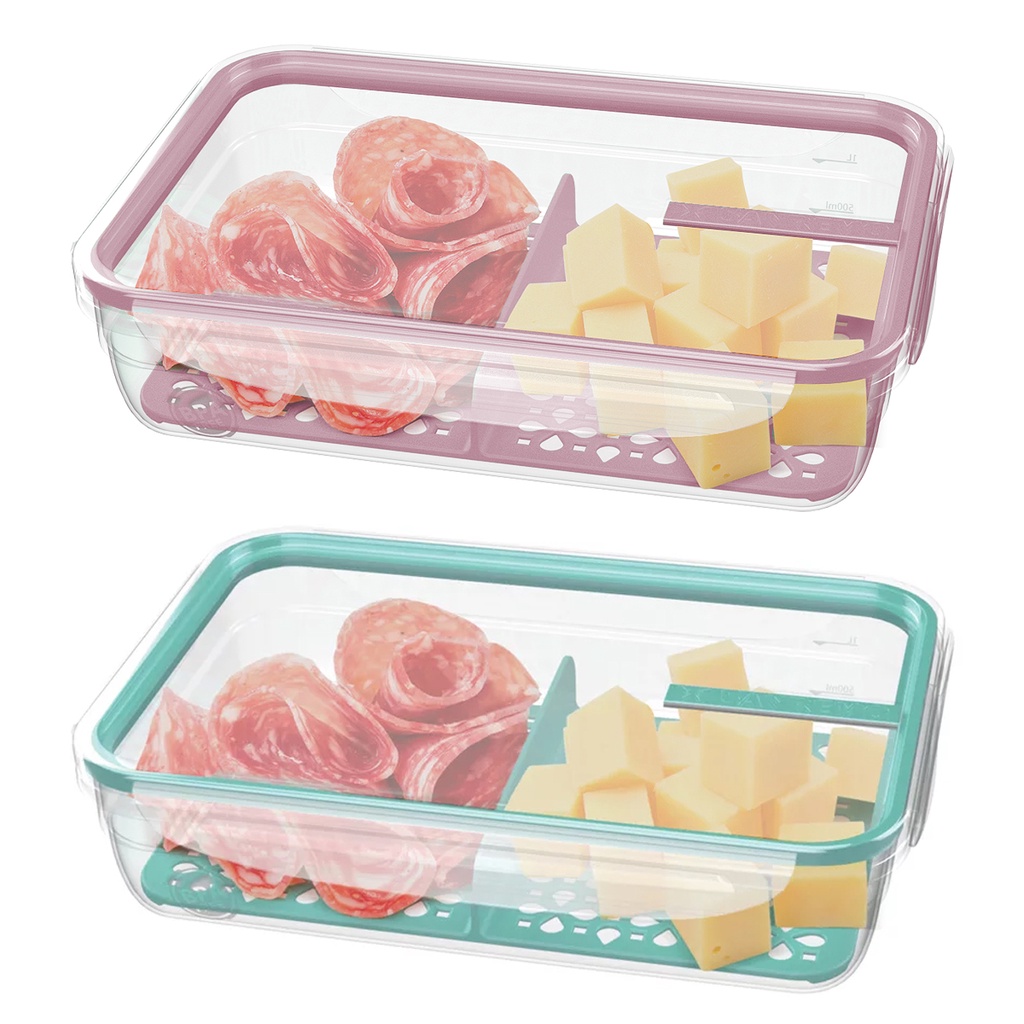 Porta Frios Duplo Com Tampa Resistente Pote Organizador Para Geladeira Com Divisória Bonito E Prático Presunto E Queijo