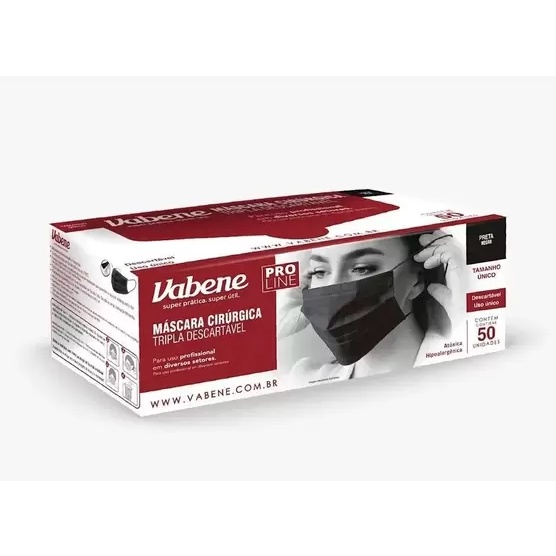 50 Máscara Descartável Cirúrgica Tripla Com Elástico Preta - Mascara Preta Máscara Descartável De Proteção Facial Tripla C/ 50