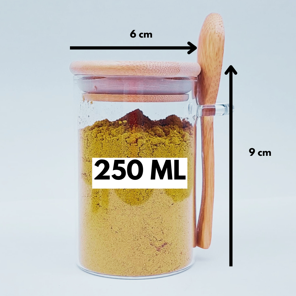 {UNIDADE - LEIA A DESCRIÇÃO} Porta tempero com vidro borossilicato tampa de bamboo e colher de bambo 250ml Unidade LEIA A DESCRIÇÃO DO PRODUTO