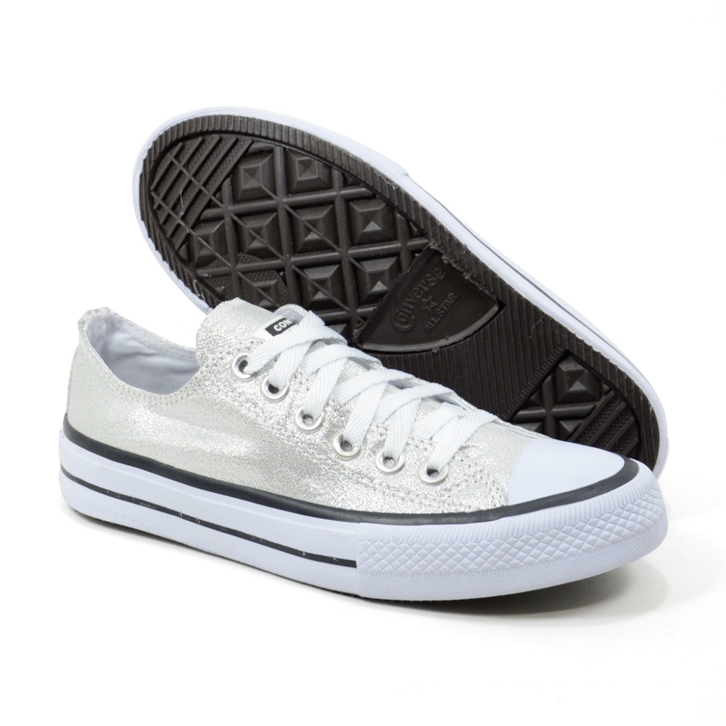 Tênis Feminino Cano Baixo Casual Star Prata Metalizado Chuck Taylor