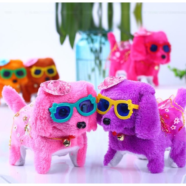 Brinquedo Cachorrinho Pelúcia Cachorro que Anda e Late a Pilha com Óculos e Acessórios