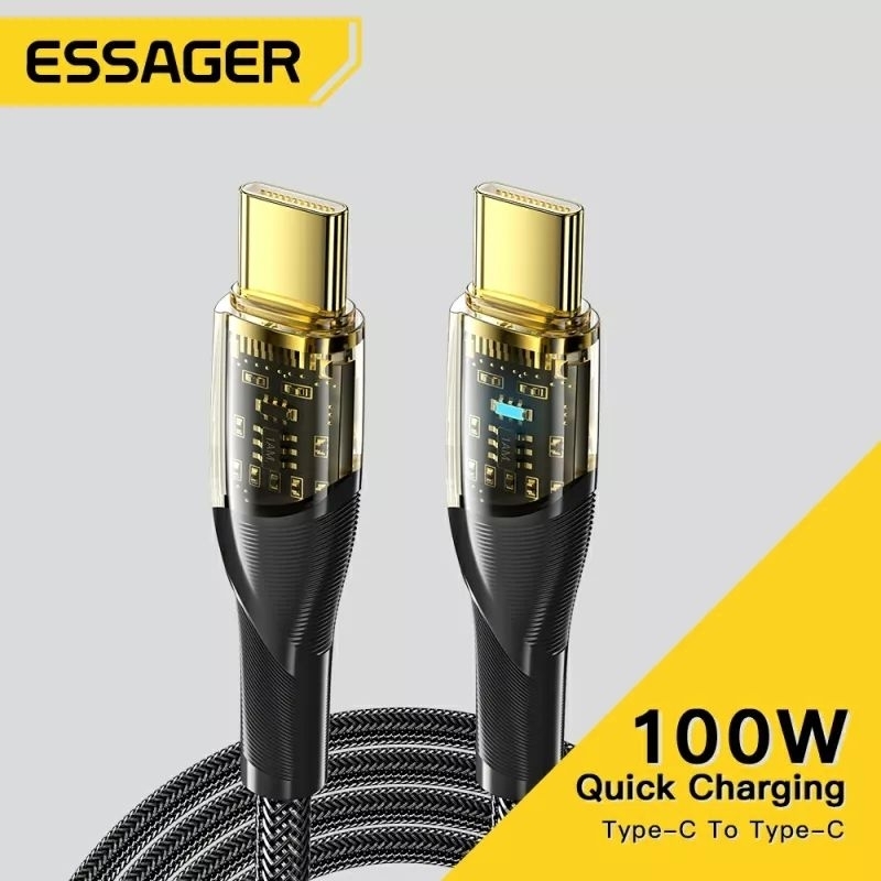 Cabo Turbo 100W USB-C Para Tipo C 2 Pontas Led Carregamento Rápido