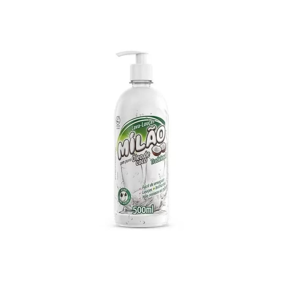 LAVA LOUÇAS LÍQUIDO NATURAL COM PURO ÓLEO DE COCO 500ML MILÃO