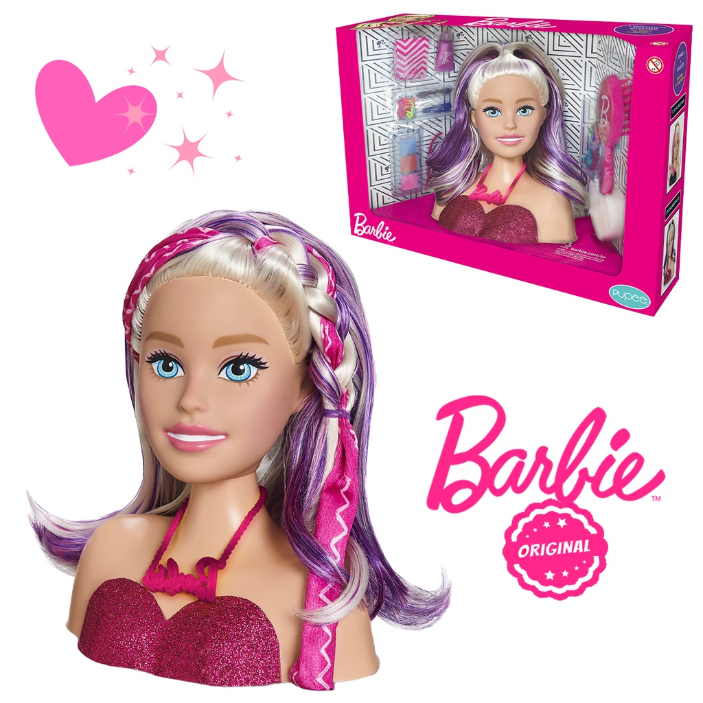 Boneca Barbie Busto Para Pentear e Maquiar Com Acessórios Maquiagem Brinquedo Infantil