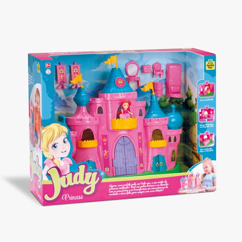 Castelo Princesa Judy Rosa com Boneca e Móveis e Acessórios Brinquedo Infantil Samba Toys