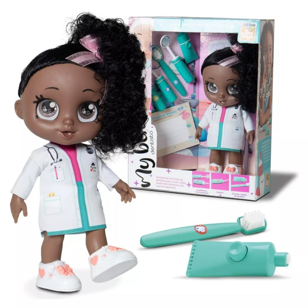Boneca Dentista My Best Negra Com Pasta Escova de Dente e Acessórios De Brinquedo - Envio Imediato - Bee Toys