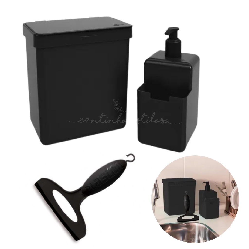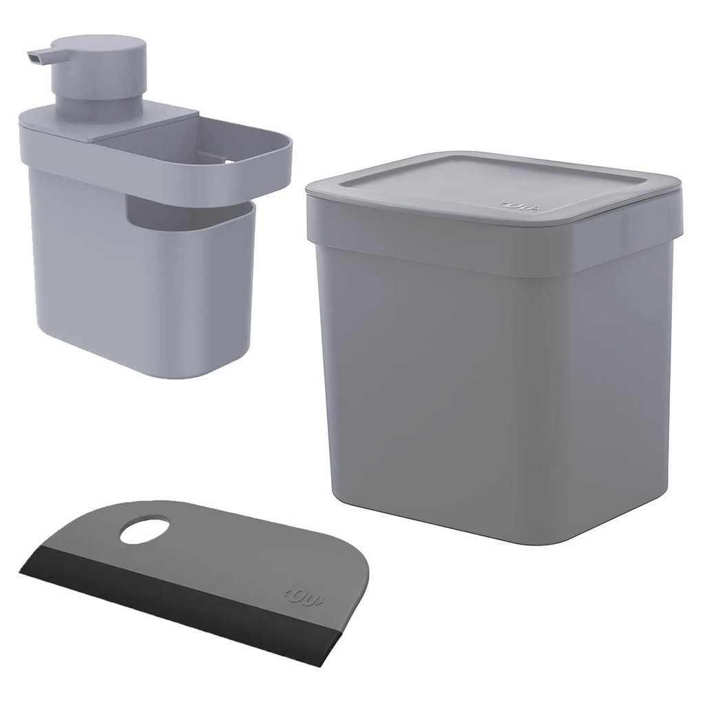 Kit Lixeira de Pia 2,5L + Dispenser Detergente + Rodo Compacto Chumbo - Ou
