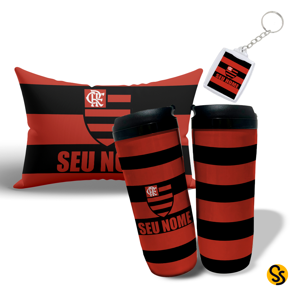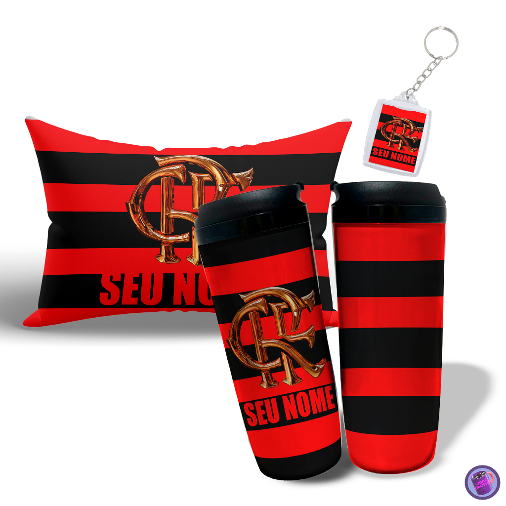 Kit Copo Térmico, com Almofada e Chaveiro Flamengo