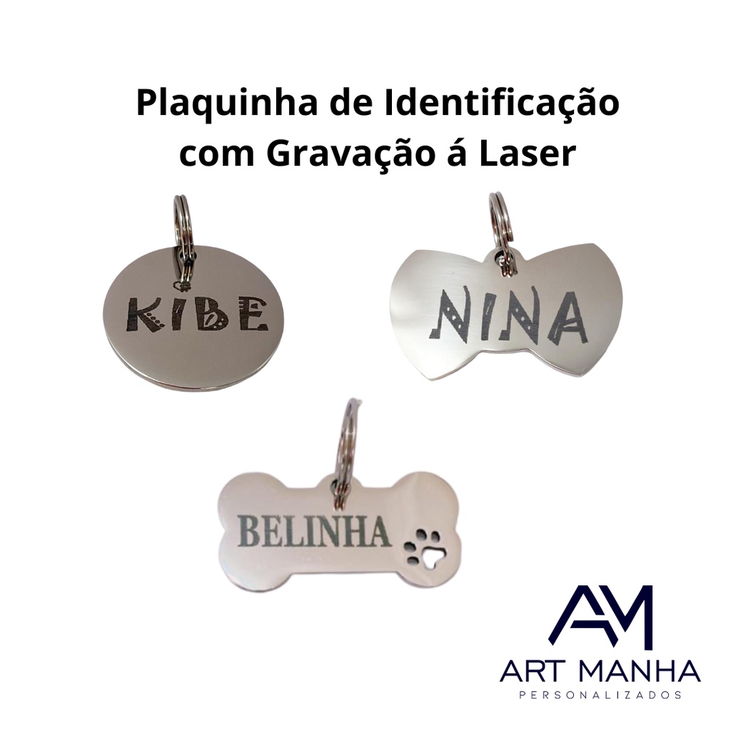 Placa de Identificação Pet Cachorro Gato em aço inox Gravação à laser