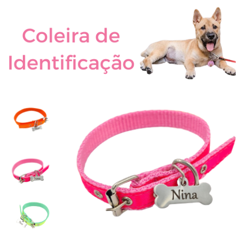 Placa de Identificação Pet Inox com Coleira Plaquinha Pingente personalizada Cachorro Cão Gato