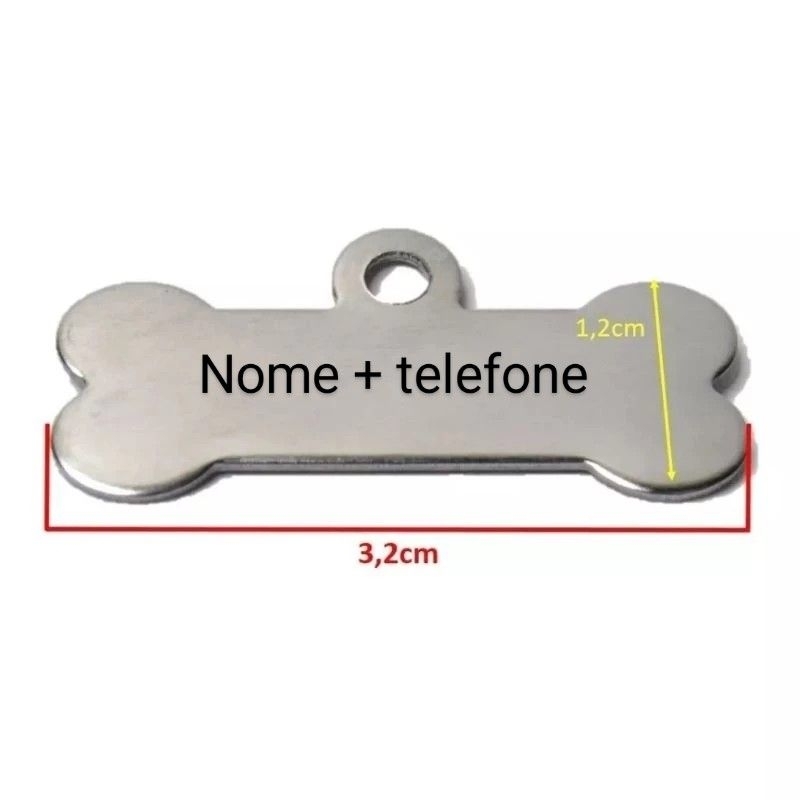 Placa de identificação Pet PRODUTO EM INOX, CACHORRO ou GATO GRAVAÇÃO DO NOME E TELEFONE