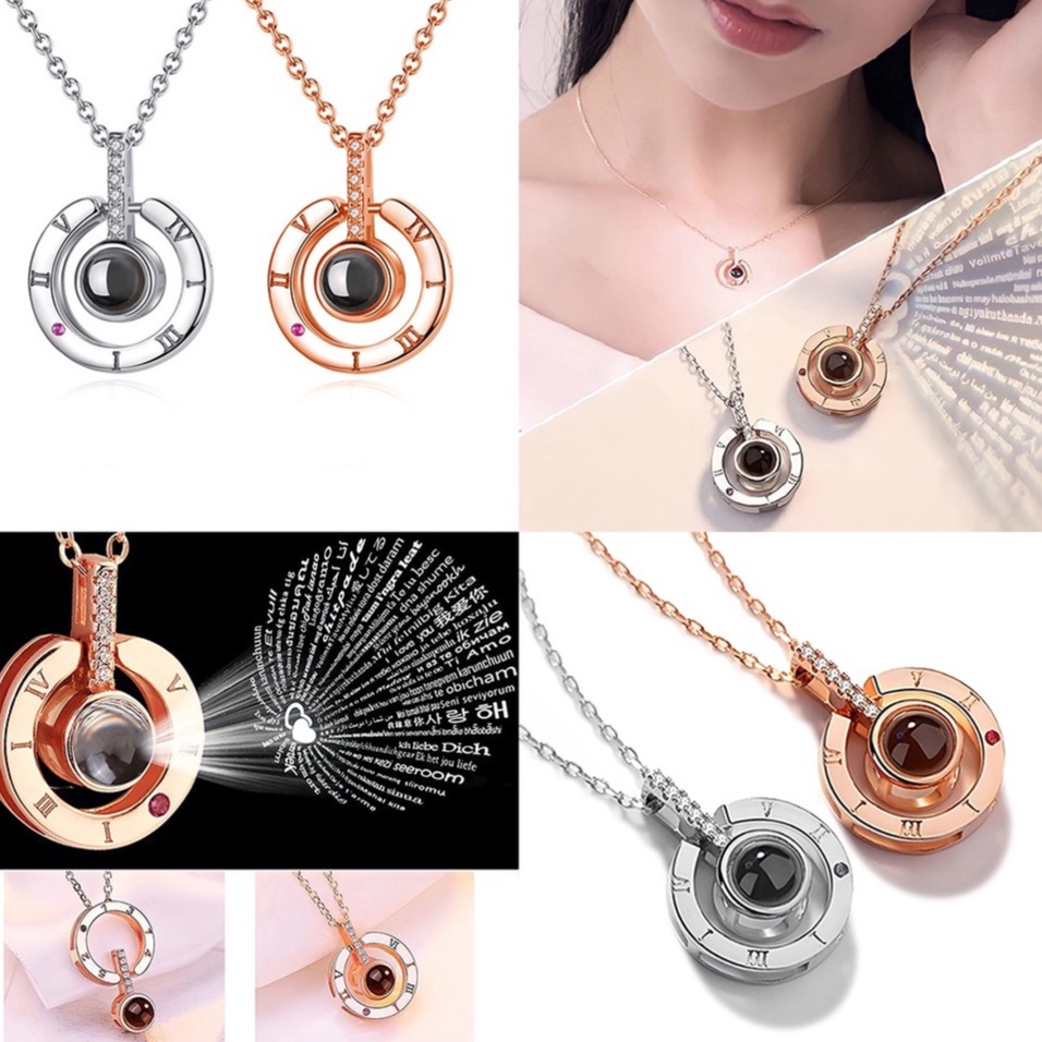 Ouro Rosa 100 Línguas Eu Te Amo Projeção Pingente De Colar Para As Mulheres Jóias Amor Colar De Casamento De Memória Dia Dos Namorados