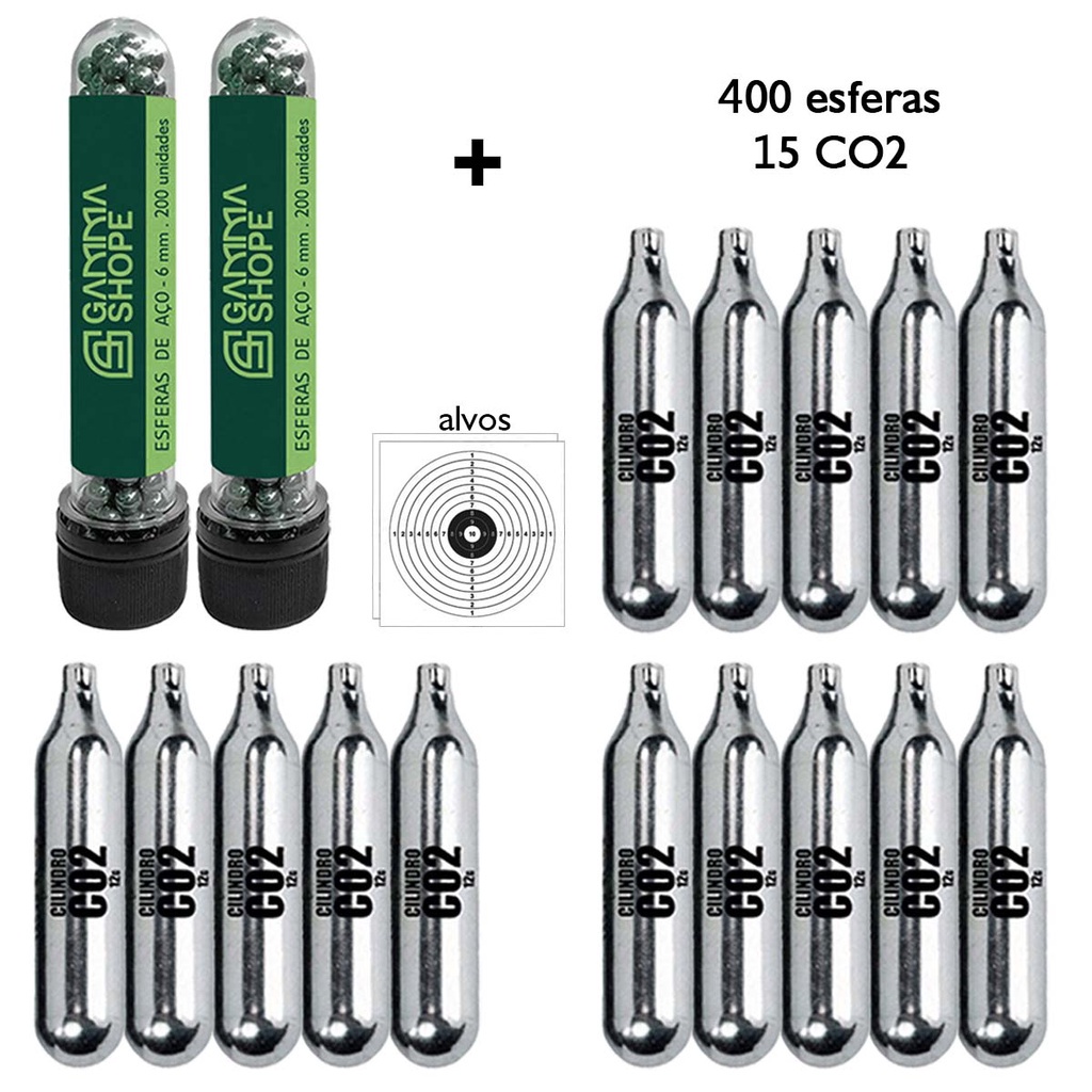 Kit 400 Esfera De Aço 6mm Airsoft Airgun + 15 Co2 12g + Alvos