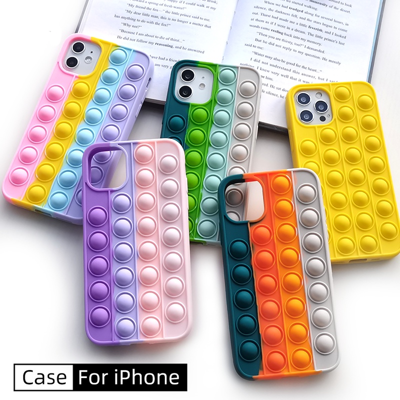 Capa Capinha Silicone Pop It Fidget Proteção de lente de câmera Para iphone 6 7 8 Plus 11 XR XS 12 Pro Max Mini