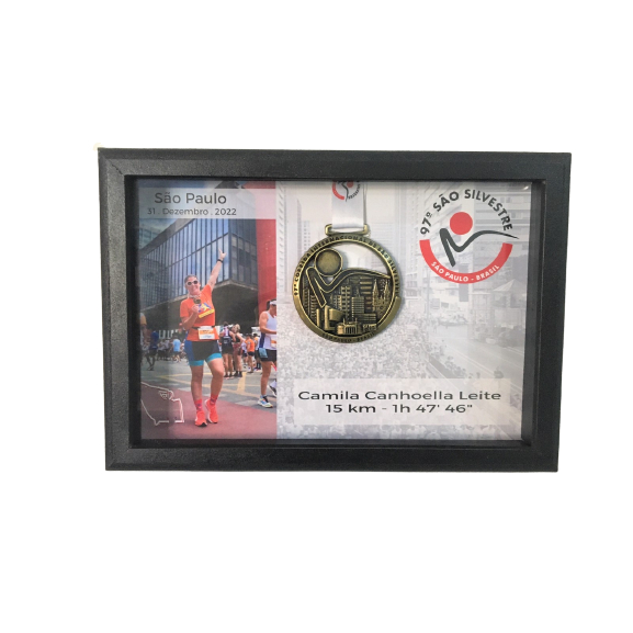 QUADRO DE MEDALHA PERSONALIZADO MARATONA CORRIDA DE RUA SÃO SILVESTRE FOTO
