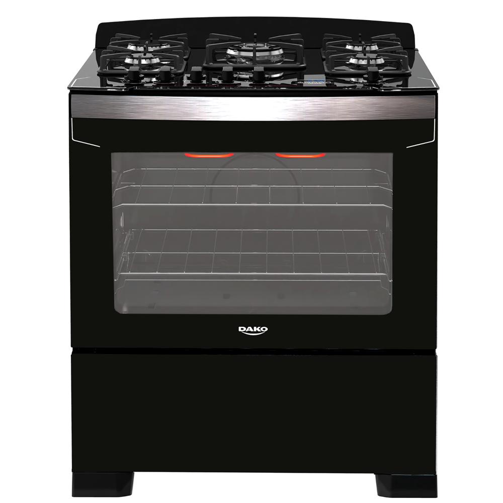 Fogão 5 Bocas Preto com Frente em Vidro Preto e Timer Digital Dako Diplomata Grill Bivolt
