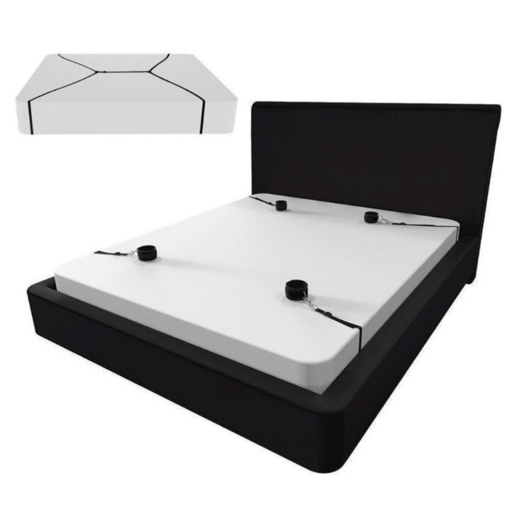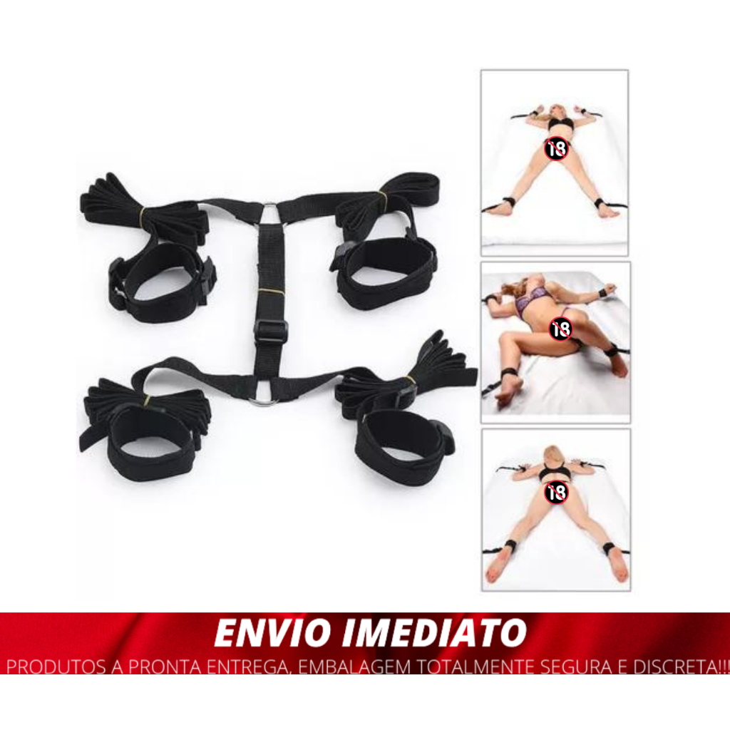 Kit Tiras Para Prender Na Cama Com Algemas Removíveis Bondage Sex Shop Bdsm